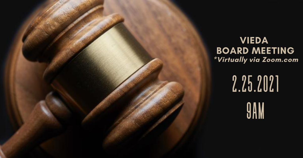 As the VIEDA Board meeting agendas become available, they can be retrieved from the VIEDA website at https://www.usvieda.org/about-usvieda/board-directors/board-meeting-agenda .